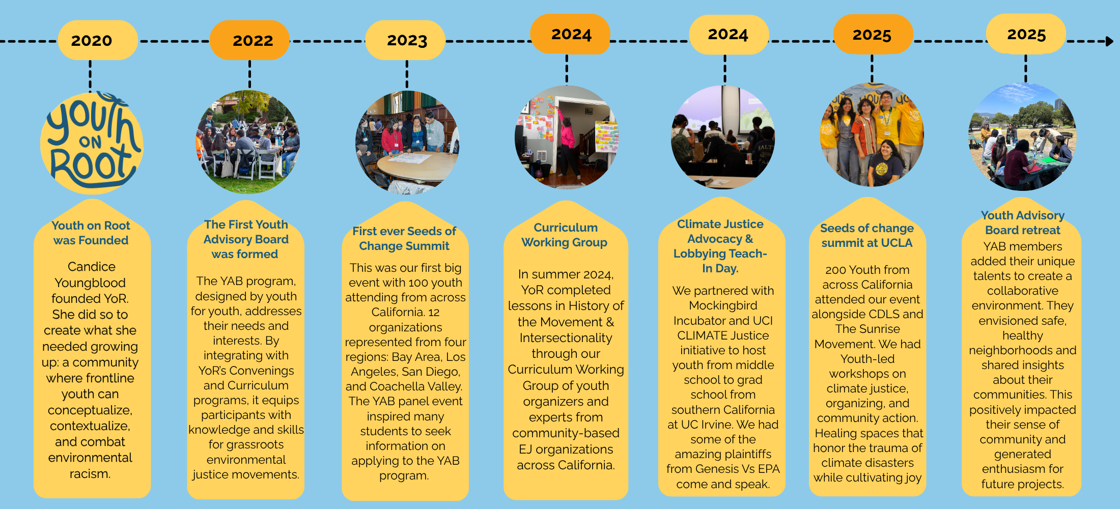Youth on Root’s Theory of Change is that frontline youths’ lived experience with environmental racism is central to their EJ expertise, and by flooding the California Youth EJ Movement with wraparound support (education, direct resources, community of peers, statewide network), they will win the fight for EJ for their own communities while simultaneously shifting statewide policies through coalition.