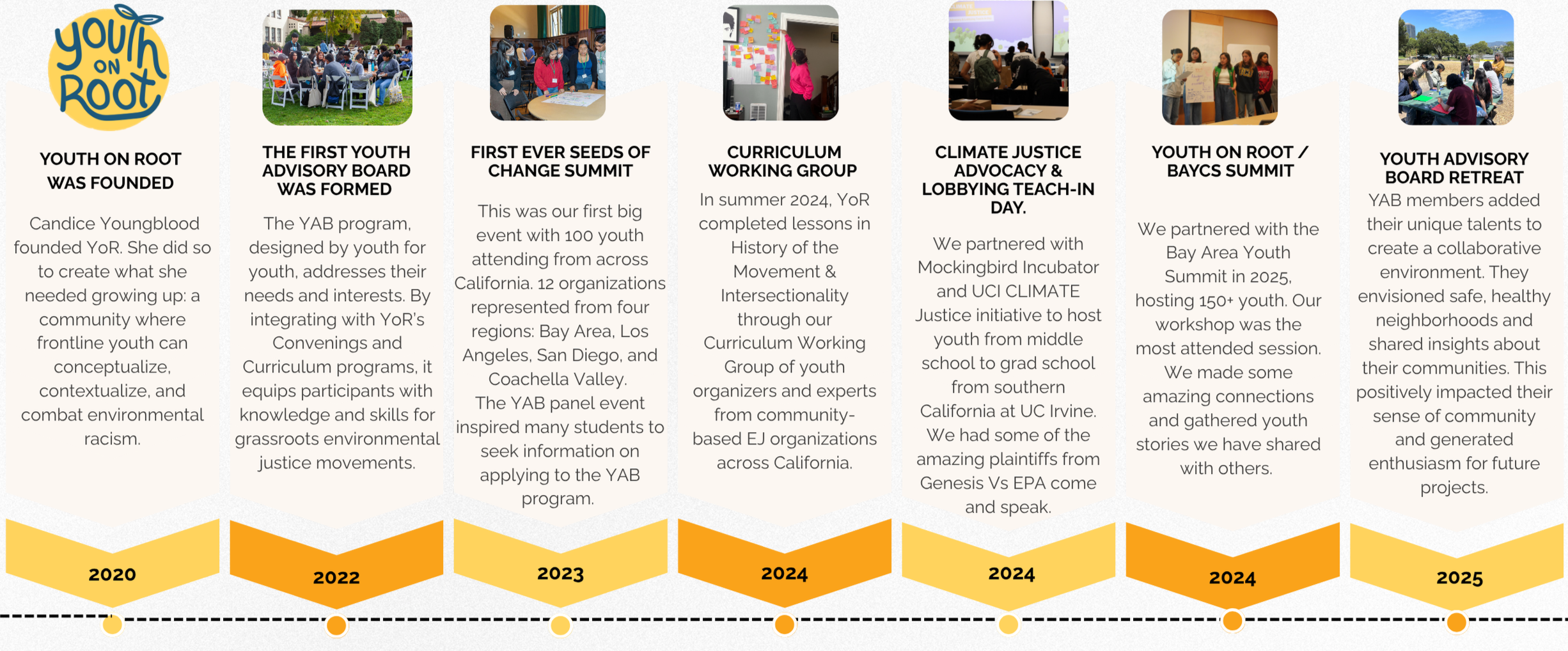 Youth on Root’s Theory of Change is that frontline youths’ lived experience with environmental racism is central to their EJ expertise, and by flooding the California Youth EJ Movement with wraparound support (education, direct resources, community of peers, statewide network), they will win the fight for EJ for their own communities while simultaneously shifting statewide policies through coalition.